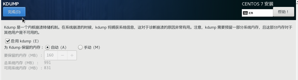 当 Linux 系统因为核心问题导致当机时, 会将当机事件发生时的内存数据转储出来。这里不用设置,直接使用默认值即可。