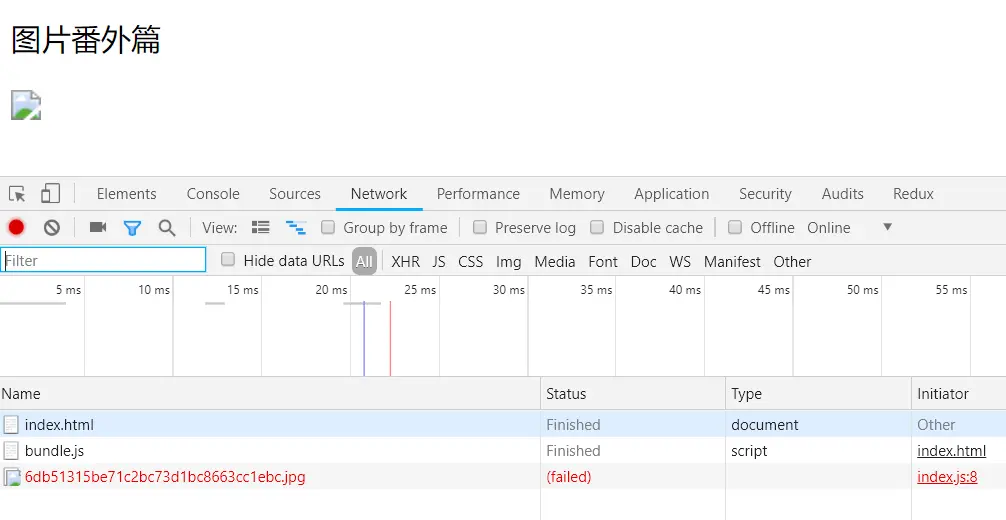 这里index.js中创建了一个img标签,并打包好的avator图片赋值到img的src上,挂载到root上显示。