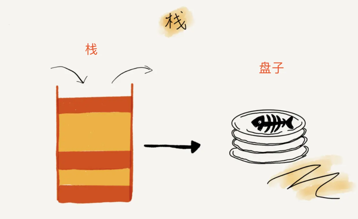 举一个生活中的例子说明:就是一摞叠在一起的盘子。我们平时放盘子的时候,都是从下往上一个一个放;取的时候,我们也是从上往下一个一个地依次取,不能从中间任意抽出。