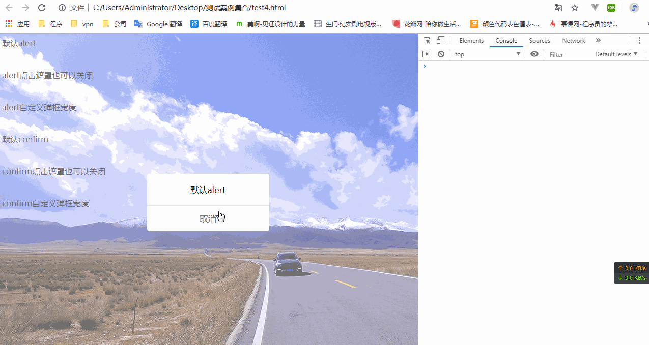 思路:直接覆盖浏览器默认的alert和confirm方法