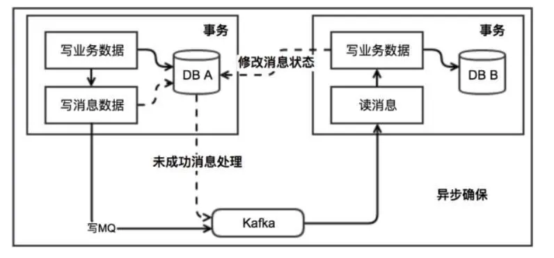 - 在分布式事务操作的另一方从消息队列中读取一个消息,并执行消息中的操作。