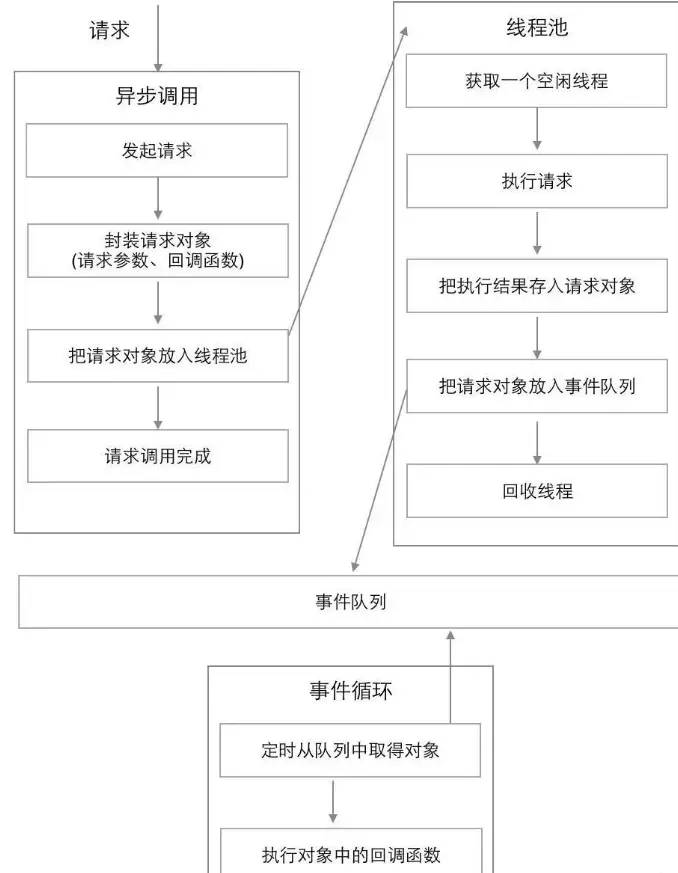 node.js中,事件主要来源于网络请求,文件I/O等,根据事件的不同对观察者进行了分类,有文件I/O观察者,网络I/O观察者。事件驱动是一个典型的生产者/消费者模型,请求到达观察者那里,事件循环从观察者进行消费,主线程就可以马不停蹄的只关注业务不用再去进行I/O等待。 -