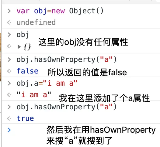 用于检查给定的属性在当前的实例中(注意不是原型)是否存在,语法是:实例.hasOwnProperty("name")