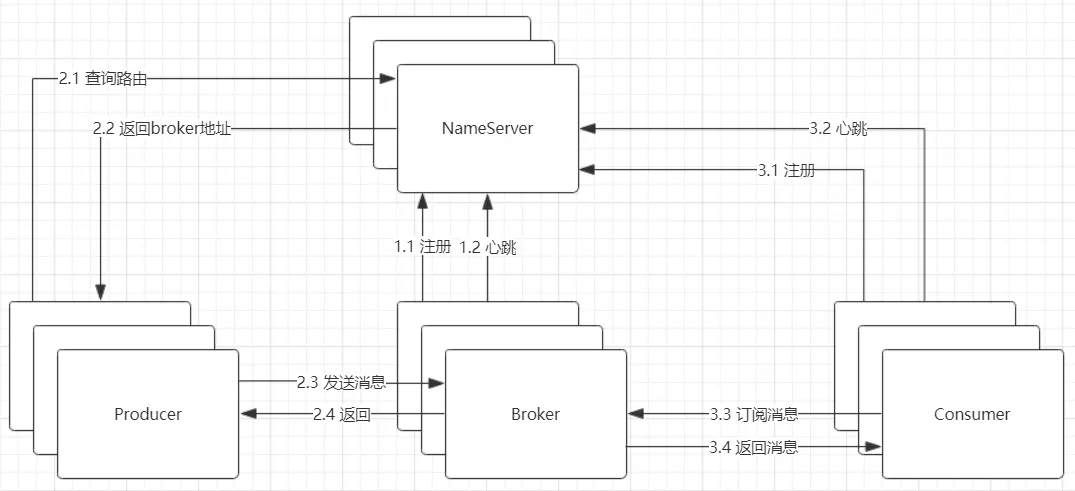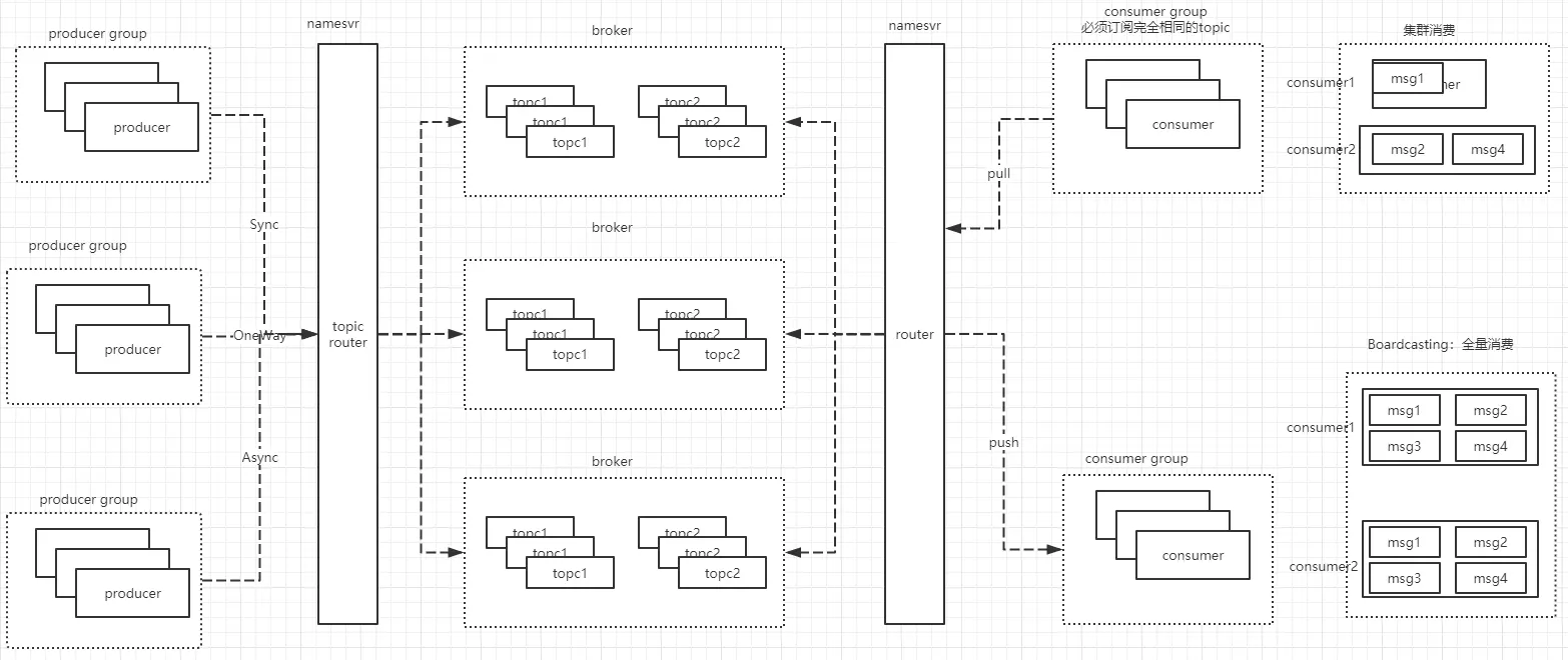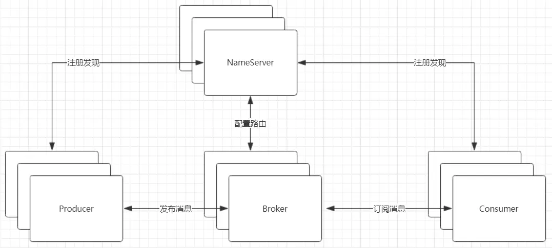 - NameServer:路由注册中心。功能包括:Broker管理、路由信息管理