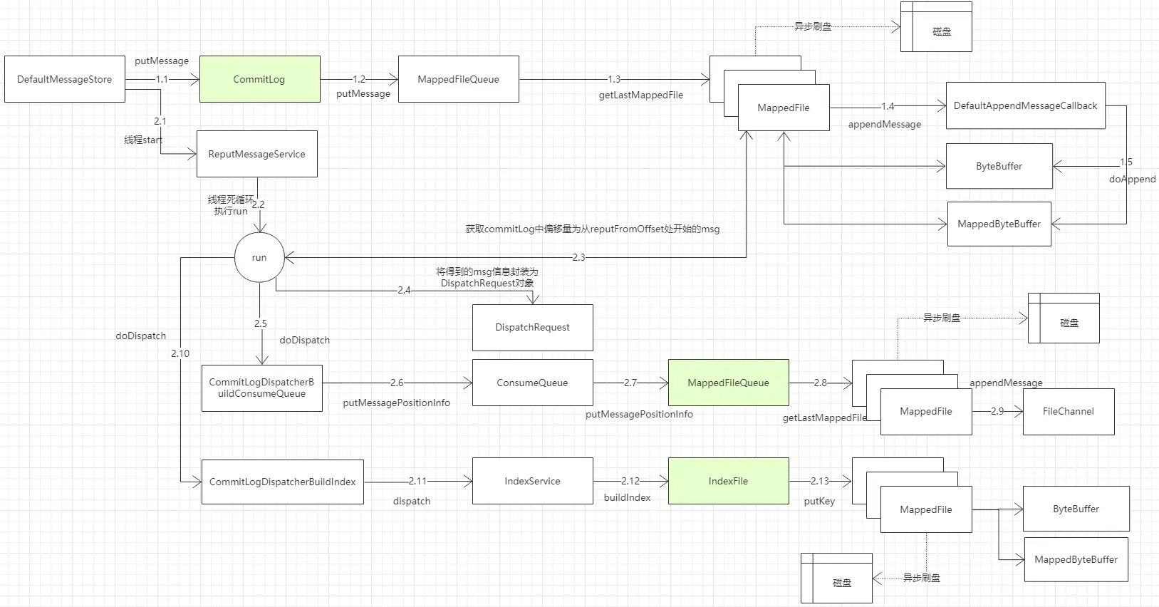 - 刷盘分为同步刷盘和异步刷盘