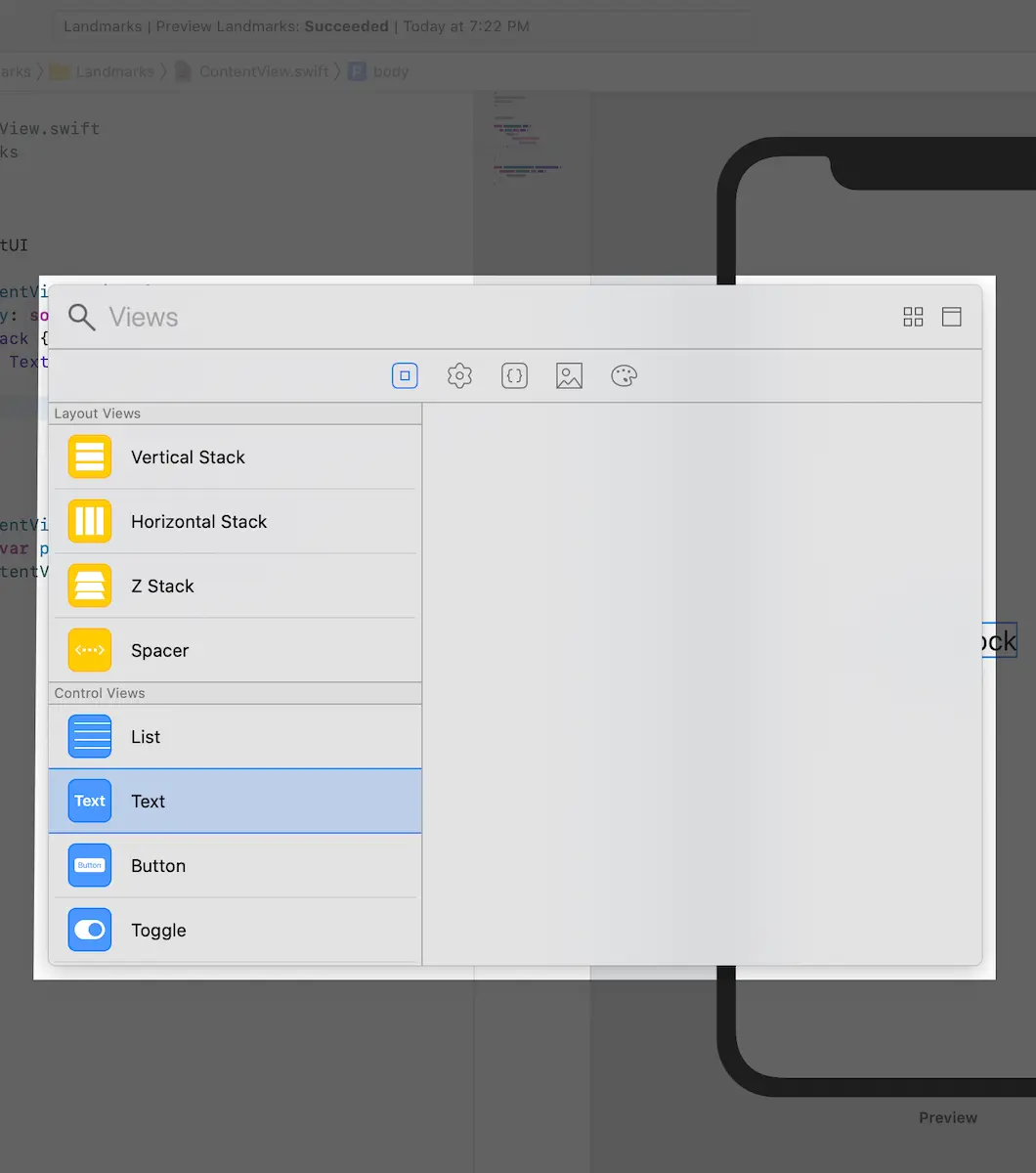 此时,Xcode会自动删除.color(.green)这行代码以响应上面的更改。