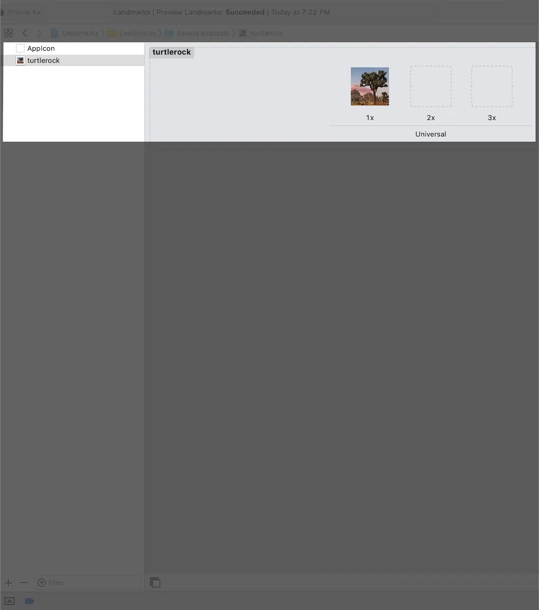 在项目的资源文件夹中找到"turtlerock.png",将其拖到"Resources"目录中的"AppIcon"位置。