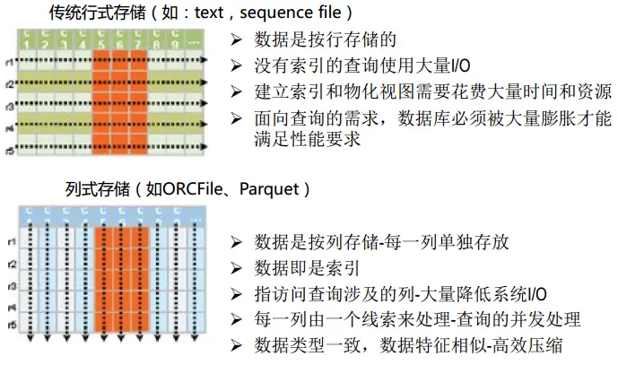 - 存储格式: 行式存储与列式存储