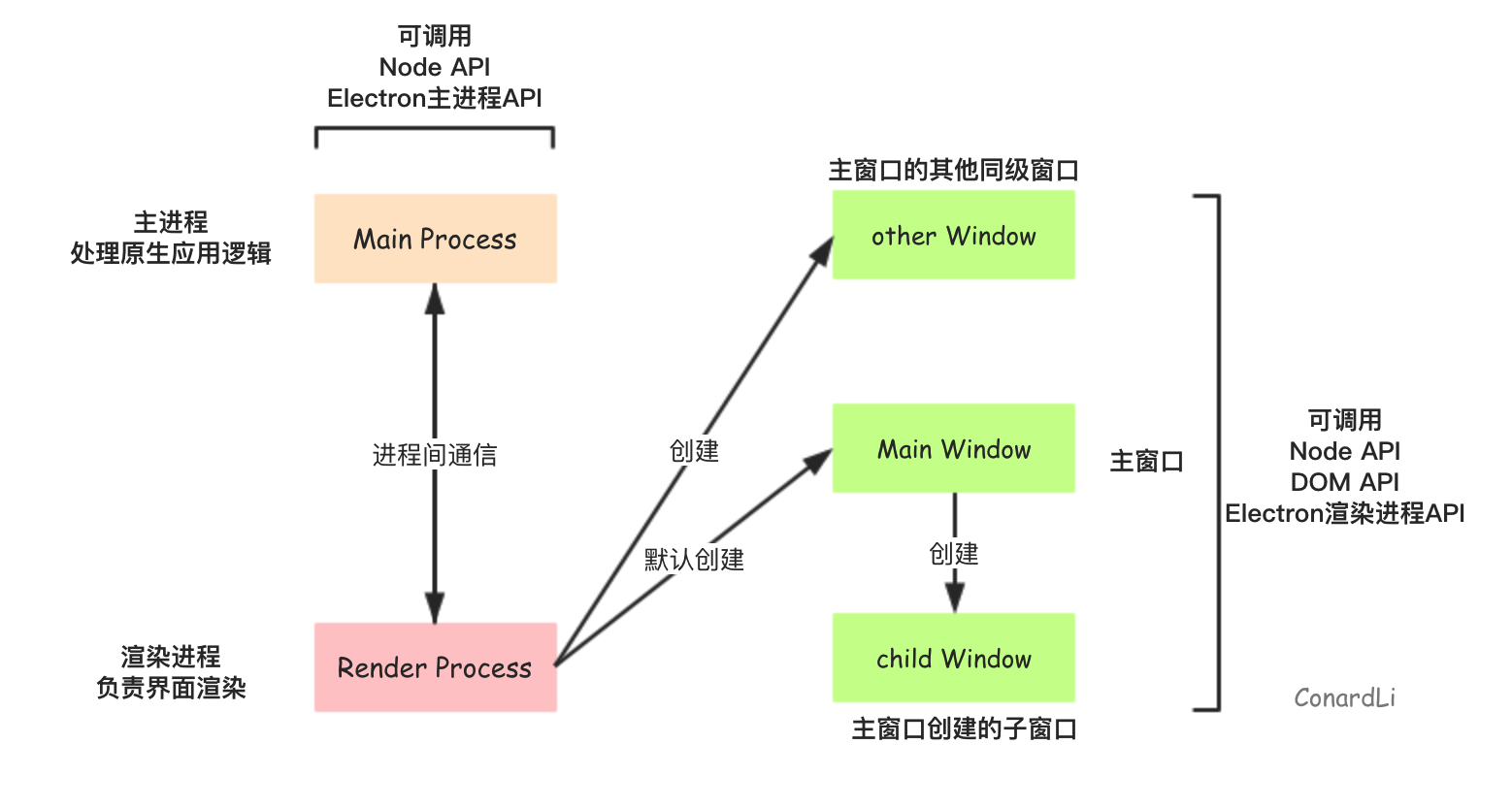 你可以把渲染进程想像成一个浏览器窗口,它能存在多个并且相互独立,不过和浏览器不同的是,它能调用Node API。