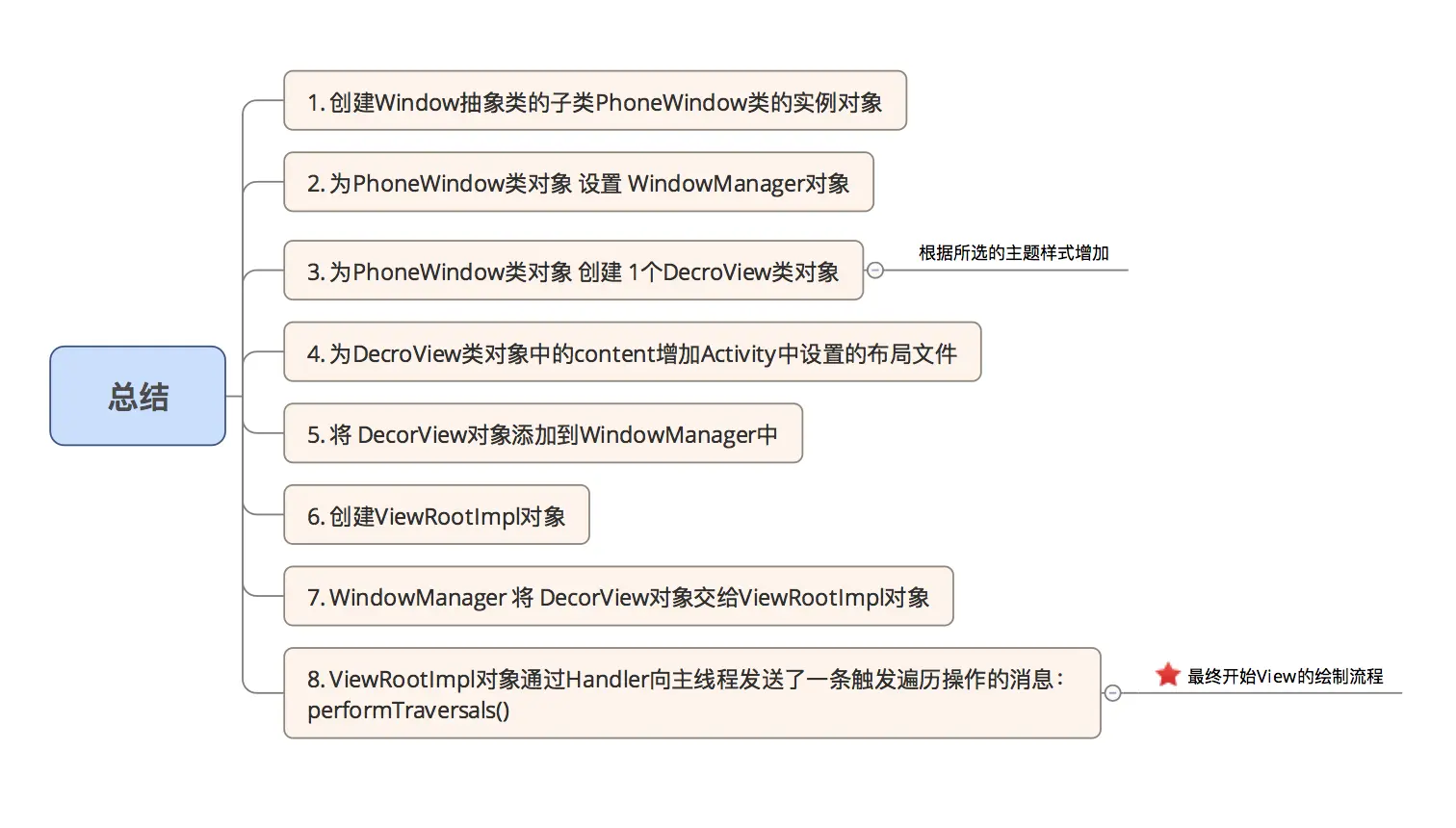 View绘制前的准备,主要包括:DecorView创建 & 显示,具体总结如下: -
