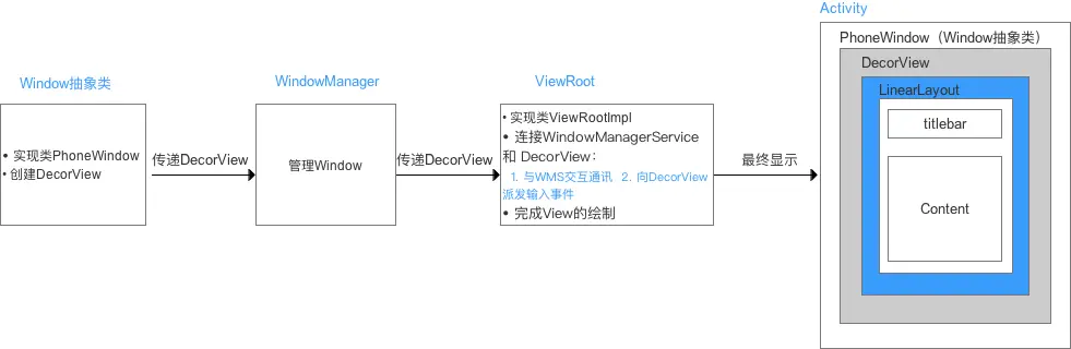 // 2. WindowManager将DecorView实例对象交给ViewRootImpl 绘制View