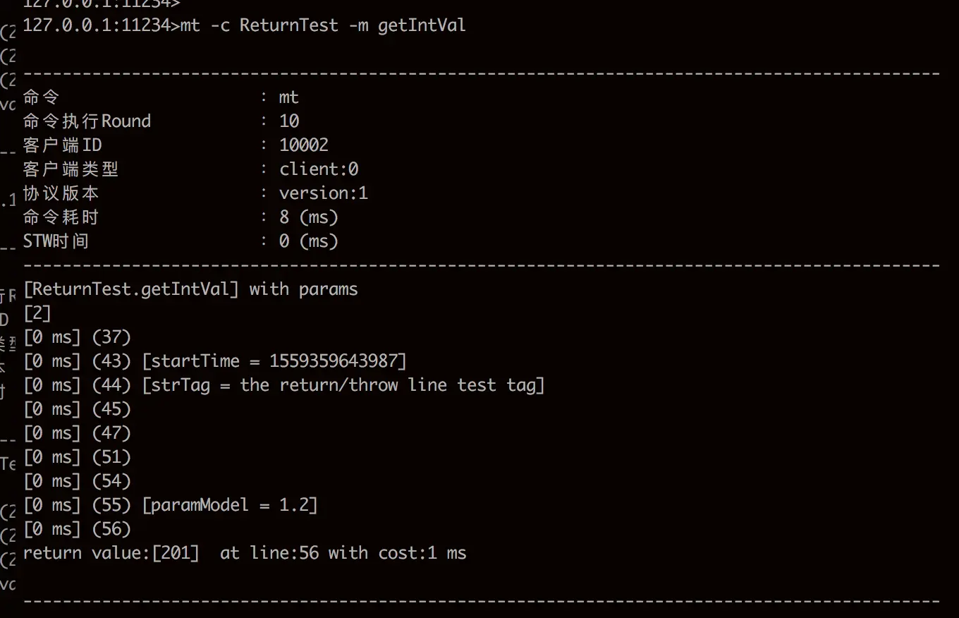 (2)在(1)中只要方法被调用一次,那么观察就会立刻结束,所以观察结果可能是方法正常结束,也可能是抛出了异常,如果只是希望观察方法正常退出,那么就可以指定-t参数为return,这样只有当第一次方法不抛出异常退出才会结束观察;