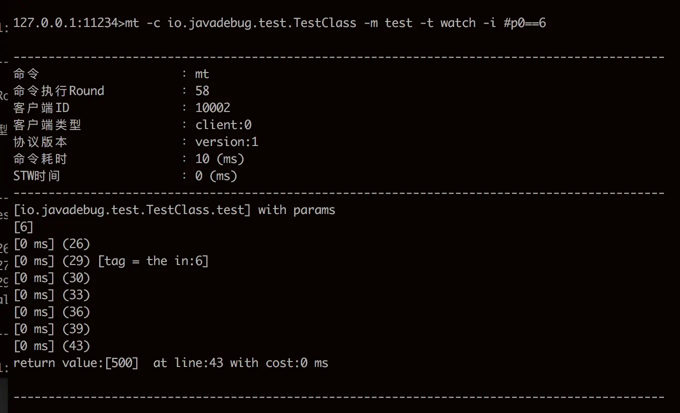 - watch:等待特定的参数,使用Spring表达式进行参数匹配,当匹配到目标参数之后,会返回方法链路信息,如果Spring表达式有误,那么会直接在第一次方法调用之后返回;