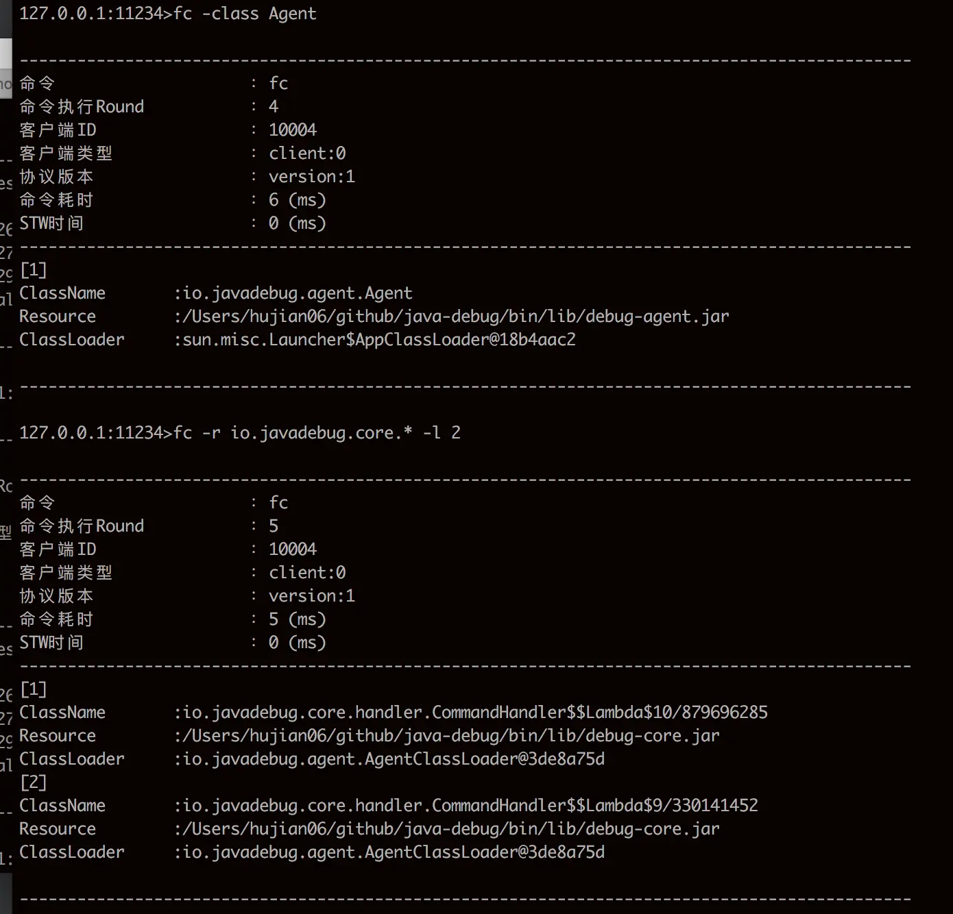 Java-debug-tool目前支持的命令不多,下面分别介绍一下当前支持的核心命令。首先介绍一下命令输出界面信息介绍: