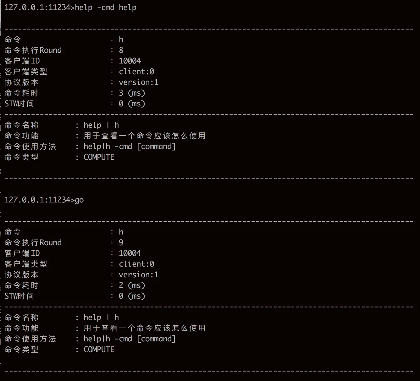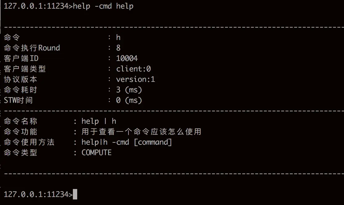 | 命令耗时 | 命令的执行耗时,从命令输入处理开始计算,到命令结果展示出来结束,所以是客户端耗时 + 服务端耗时 | |