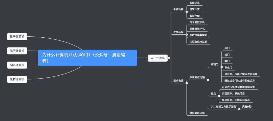 以上介绍的都是基于电子计算机的。所以我们说,计算机只认识0和1是不准确的,应该说:电子计算机只认识0和1,因为还有些计算机不是电子计算机。