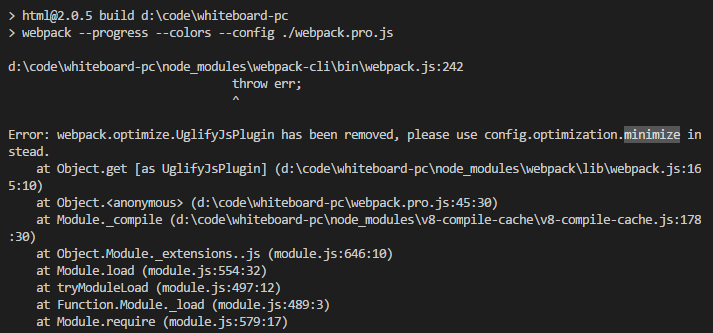 vue-cli2.0搭建的项目迁移至3.0 super喵星人 2019-06-10 1,371 阅读1分钟 1.webpack.optimize.UglifyJsPlugin has been removed 解决方案: 2.代码打包: cli3.0搭建 cli2.0搭建 解决方案:
