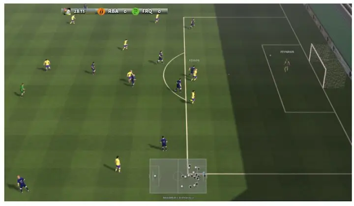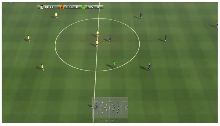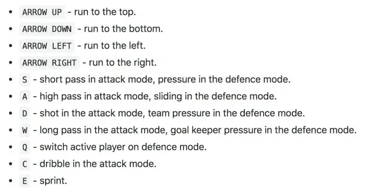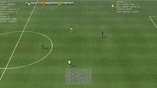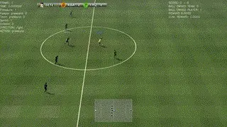 而且,整个模拟环境中不仅可以用AI球员,还可以手动控制球员,用键盘上下左右移动,按字母键进行传球、射门等操作,与AI对战。