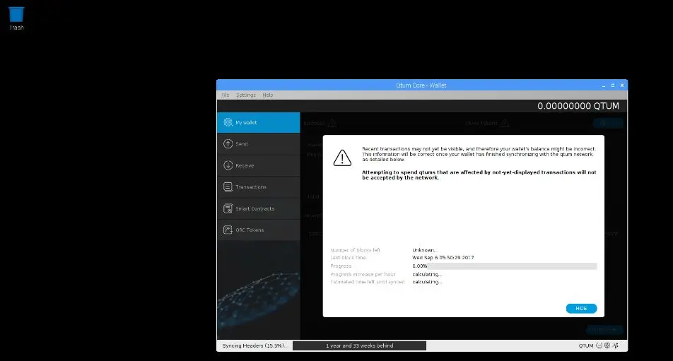 点击“OK”按钮,Qtum就会自动开始进行区块同步。