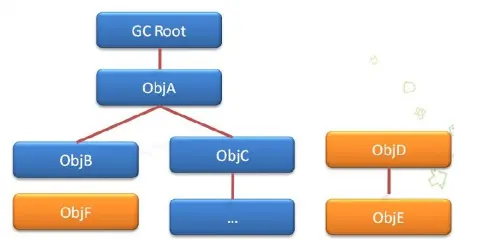- 可达性分析算法是从离散数学中的图论引入的,程序把所有的引用关系看作一张图,从一个节点GC ROOT开始,寻找对应的引用节点,找到这个节点以后,继续寻找这个节点的引用节点,当所有的引用节点寻找完毕之后,剩余的节点则被认为是没有被引用到的节点,即无用的节点,无用的节点将会被判定为是可回收的对象。