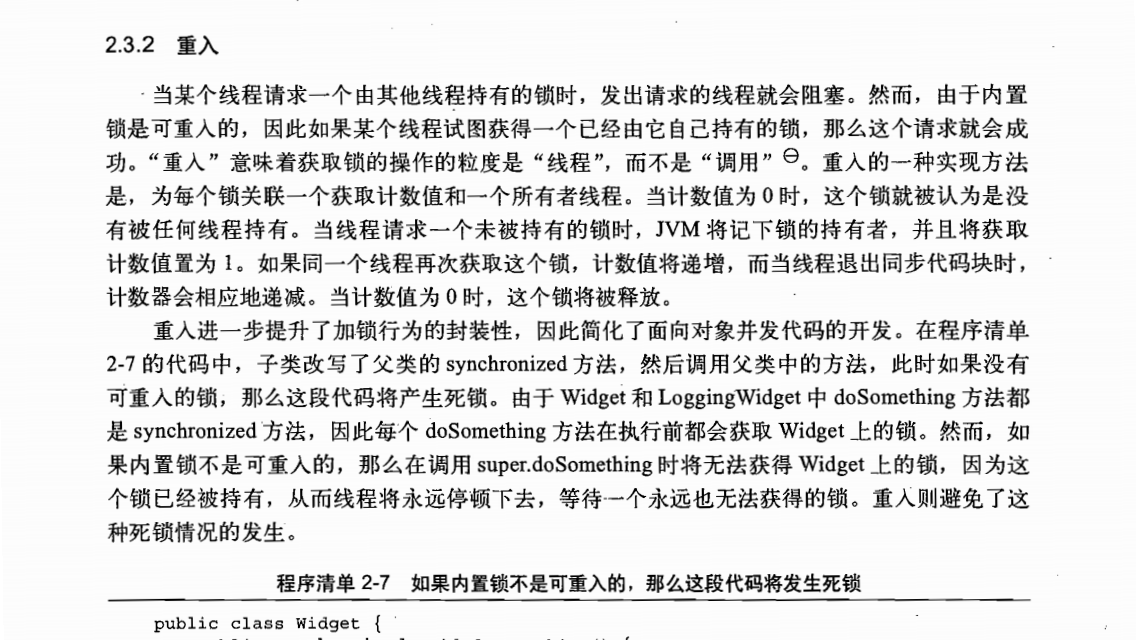 当前线程可重新获取同一个对象的锁。即同一个锁。