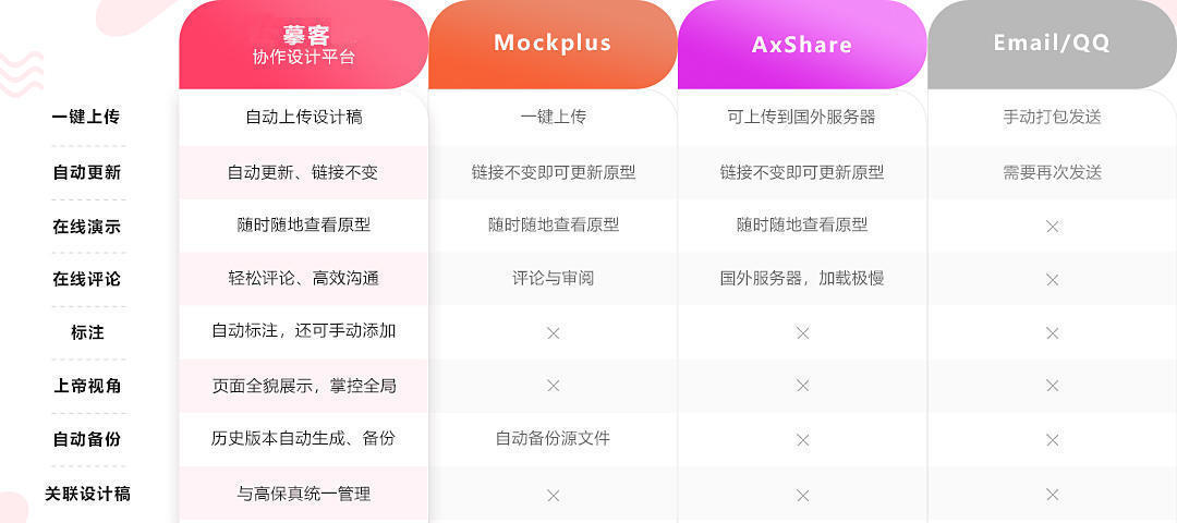 从打造摹客协作设计平台开始,摹客团队一直在为之努力,摹客协作设计平台也深受产品团队的青睐。另外,Axure作为老牌原型设计工具,也是国内设计团队比较常用的。虽然这两款工具对产品经理的工作大有裨益,但我们也收到了很多用户朋友们的反馈和需求——