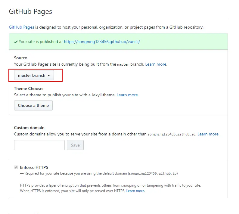 gitHub如何搭建前端项目服务 重零开始 2019-06-10 248 阅读1分钟 1.gitHub Settings 设置 2.config/index.js设置 把assetsPublicPath路径修改成 ./ 3.npm run build 提示 4.生成url(http-server测试,可以忽略) 选择url 5.gitignore文件忽略/dist,提交到github上 6.https://github名称.github.io/项目名称/dist/#/url