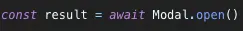 这样,我们就可以使用await 获取到Modal内到交互结果了,并且做到了较好的解耦。