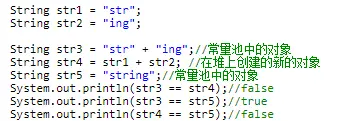 - 使用new关键字创建String的对象不会存储在常量池中.