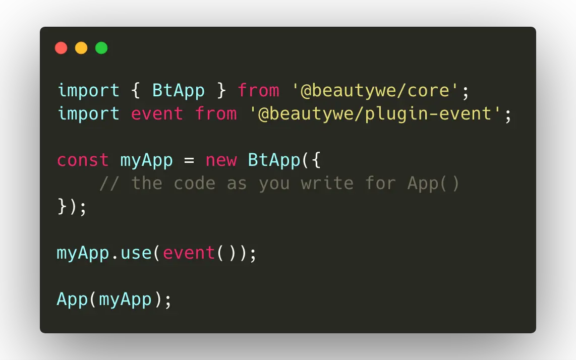 new BtApp({...}) 的执行结果是对原生的应用进行包装,其中包含了「插件化」的处理,然后返回一个新的实例,这个实例适配原生的 App() 方法。