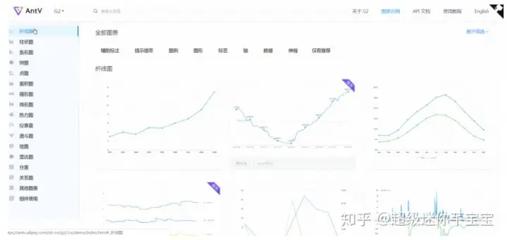 作为一个非常全面的图表库,AntV G2库有折线图、柱状图、条形图、雷达图、箱体图、面积图、饼图、热力图、仪表盘… …几乎满足了所有基本的图表类需求。