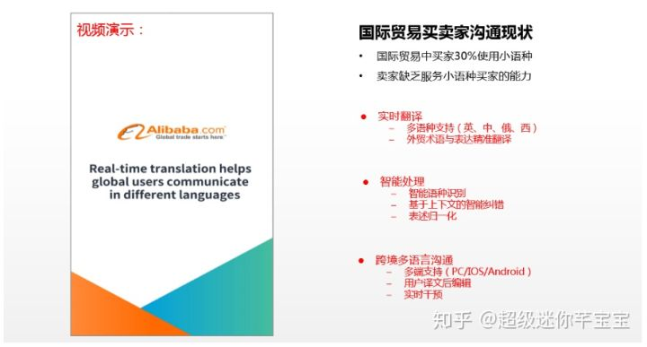 阿里巴巴集团内部的跨境贸易中涉及了海量的跨语言问题,从成本、效率和实时性来讲,海量的信息如果单纯依赖人工翻译完全无法满足需求,在这样的背景下,机器翻译显得尤为重要。