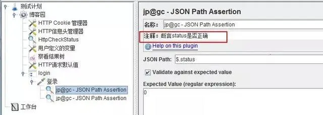 我们对infoGet的接口添加断言,断言username和status,见断言的截图: