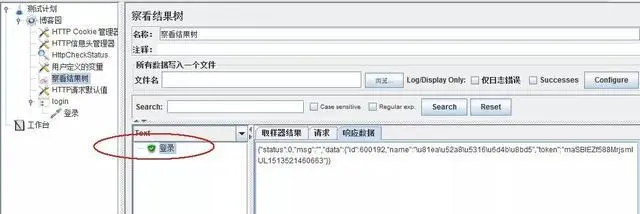 查看结果树很好理解,因为我们的接口用例执行成功后,我们需要看下执行的结果是通过还是失败,这里我们添加了登录的接口用例,见login接口用例截图: