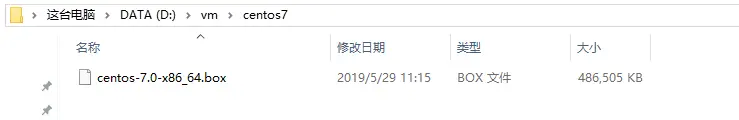 2 进入目录 D:\vm\centos7 ,里面放centos-7.0-x86_64.box