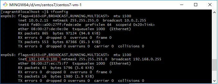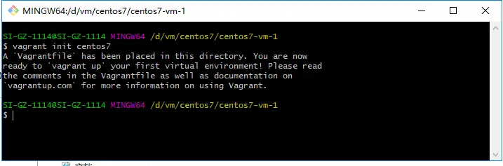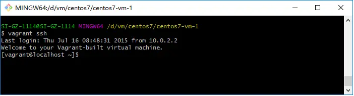 可以在D:\vm\centos7\centos7-vm-1 目录下,使用vagrant ssh 。连接进入虚拟机