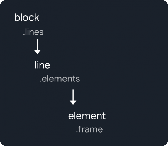 类型。它很好用,因为可以包含像是图片方向之类的具体元数据,让 ML Kit 用来处理图像。 textRecognizer