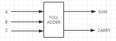 因此全加器有三个输入,A,B,C(都是1个bit),所以最大的可能就是1+1+1,总和1,进位1,因此也需要两条输出线,“总和”和“进位”