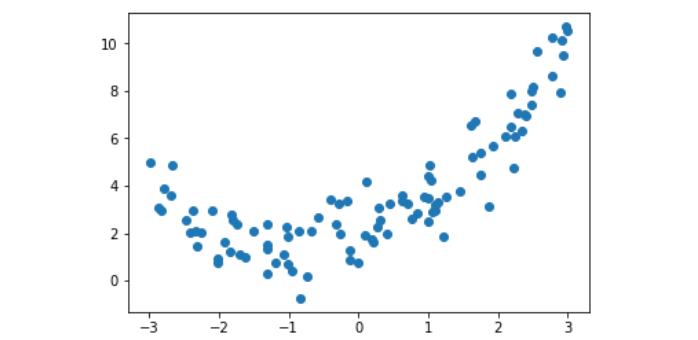 y = 0.5 * x**2 + x + 2 + np.random.normal(0, 1, 100)