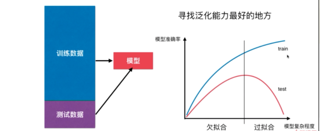 对数据集分成训练集与测试集的意义就在于,测试数据集可以验证我们模型的泛化能力。如果对训练数据拟合很好,但是对测试集拟合的不好,那就可能发生了过拟合。
