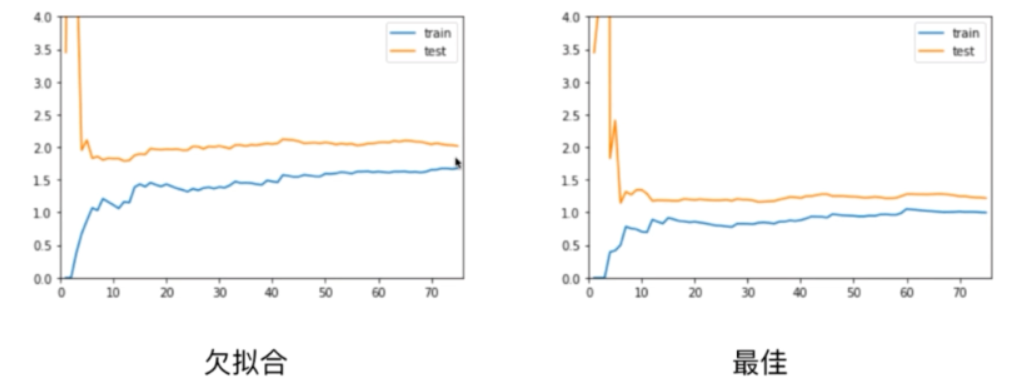 我们对比一下欠拟合、过拟合 与 最佳情况的对比