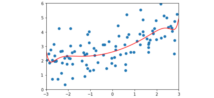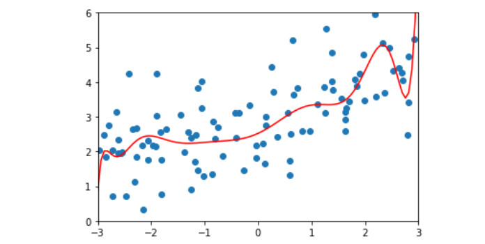 如果使用多项式回归,degree为100的话,就会发生过拟合