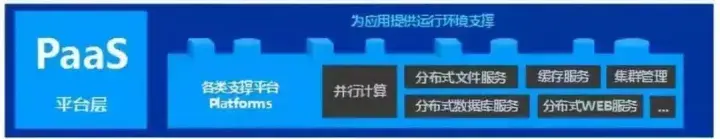 第二层:平台即服务(Platform-as-a-Service),这个时候就可以偷懒一点了,给开发人员用的中间件全部由云服务商提供,程序员只用关注自己的开发逻辑,不用去管理服务器,更不用关心软件和数据以何种形式存在,代表例子有数据库、消息队列。