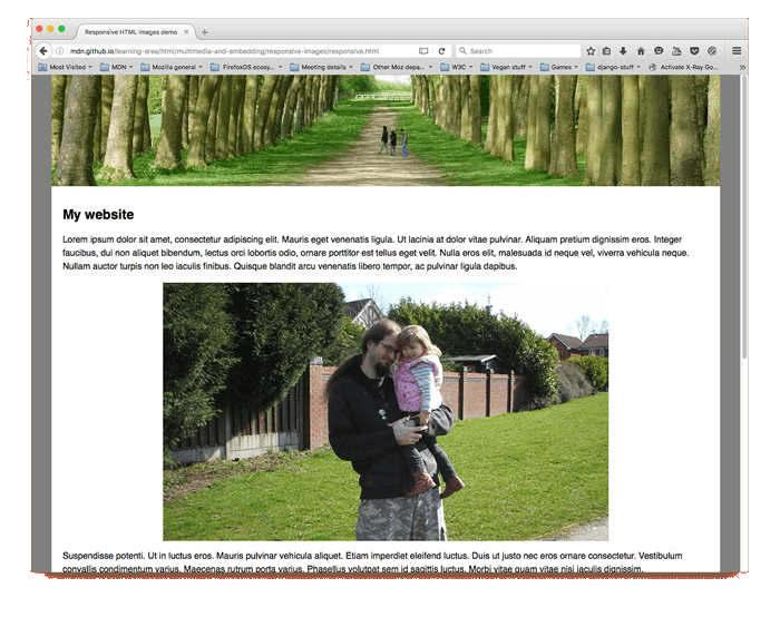 上面代码中,sizes属性给出了三种屏幕条件,以及对应的图像显示宽度。宽度不超过440像素的设备,图像显示宽度为100%;宽度441像素到900像素的设备,图像显示宽度为33%;宽度900像素以上的设备,图像显示宽度为254px。