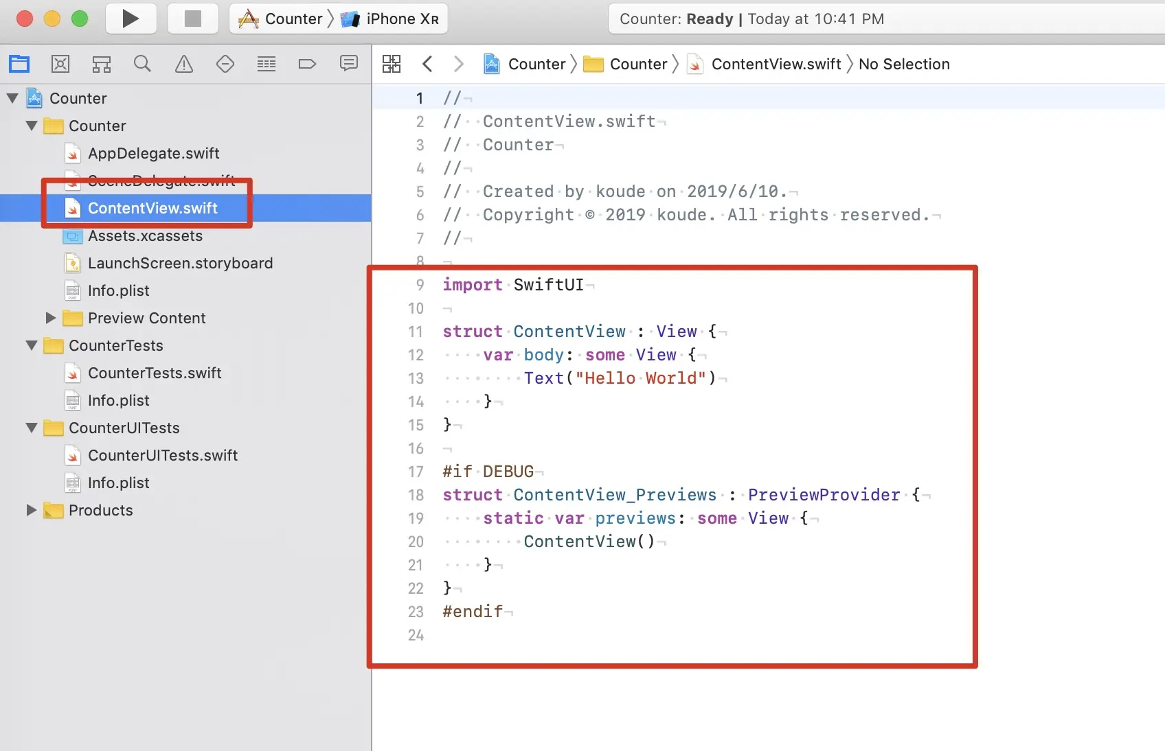 Create,一个使用 SwiftUI 的工程就会创建成功。