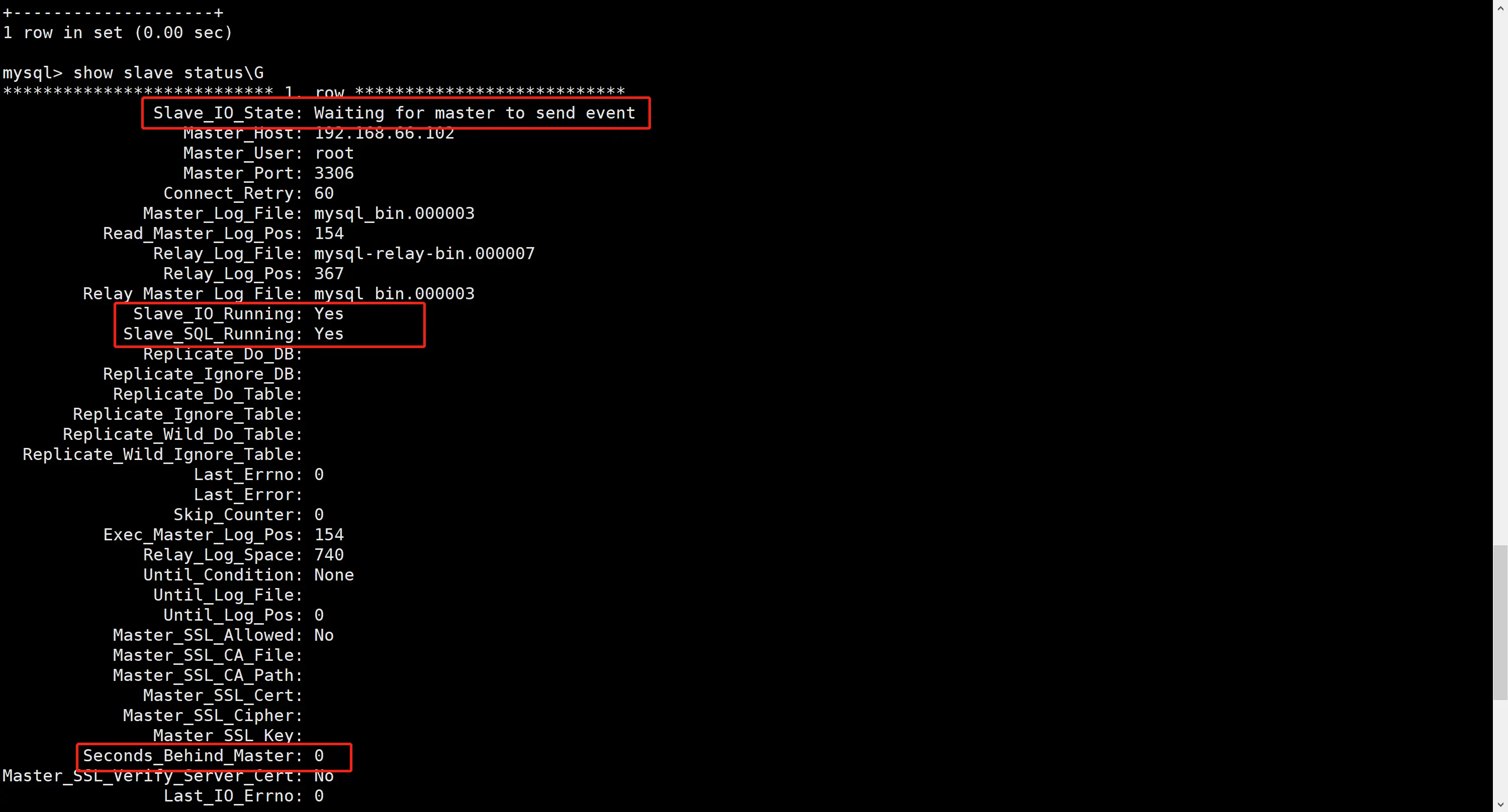 seconds_behind_master是指从库跟主库的延迟slave_io_running表示从库接收主库bin log的IO线程的状态slave_sql_running表示从库执行主库bin log的SQL线程的状态