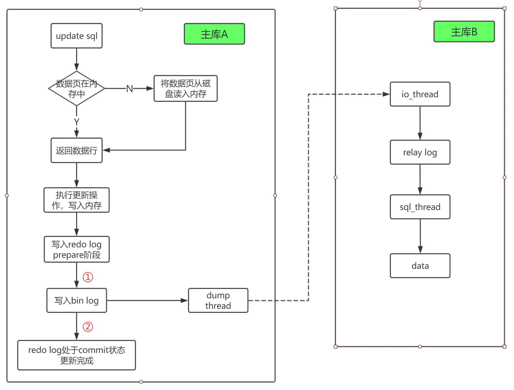 io_thread和sql_thread,io_thread负责与主库建立连接 - 主库校验完用户名密码后,根据从库的要求,选择对应的