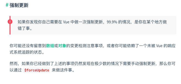 而 $forceUpdate() 的功能,就是迫使实例重新渲染,但尴尬的是,我使用了之后并没有效果,我觉得是我用错了,O__O "…