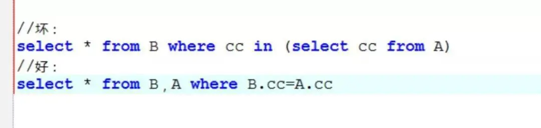 如果查询的两个表大小相当,那么用in和exists差别不大。 如果两个表中一个较小,一个是大表,则子查询表大的用exists,子查询表小的用in: 例如:表A(小表),表B(大表)