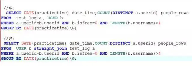 这个时候需要有经验的DBA进行判断,选择正确的驱动表,这个时候 straightjoin 就起了作用了,下面我们来看一看使用straight_join进行优化的案例。
